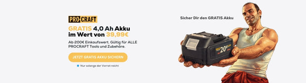 🔋 GRATIS 4,0 Ah PROCRAFT Akku im Wert von 39,99€ sichern!