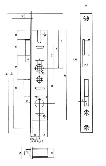 Bever Serrure à mortaiser pour cadre tubulaire ( 3322099051 ) PZW 24/30/72/8 mm DIN gauche / droite Exclusion du pêne 11 mm 244 mm