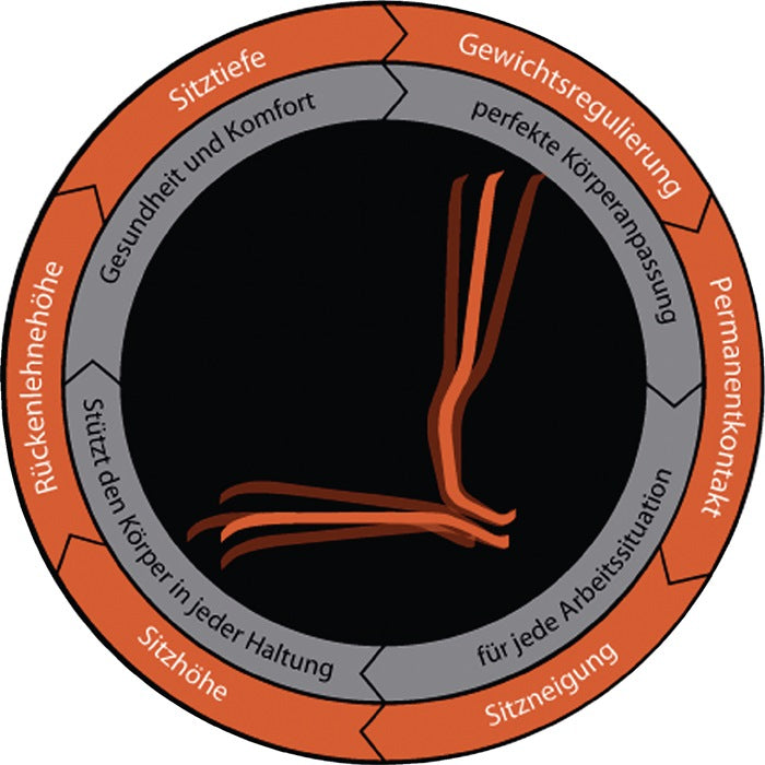 selon DIN 68877 - réglage de la hauteur d'assise par ressort à gaz facile à utiliser - rembourrage ergonomique de l'assise et du dossier en tissu Supertec, extrêmement résistant résiste aux influences mécaniques - respirant, confortable, souple et lavable - dossier à contact permanent - assise réglable en inclinaison, en hauteur et en profondeur - dossier réglable en hauteur - couleur des sangles flexibles : gris - piètement avec piétement stable en aluminium et roulettes doubles de sécurité pour sols durs, freinées en fonction de la charge
