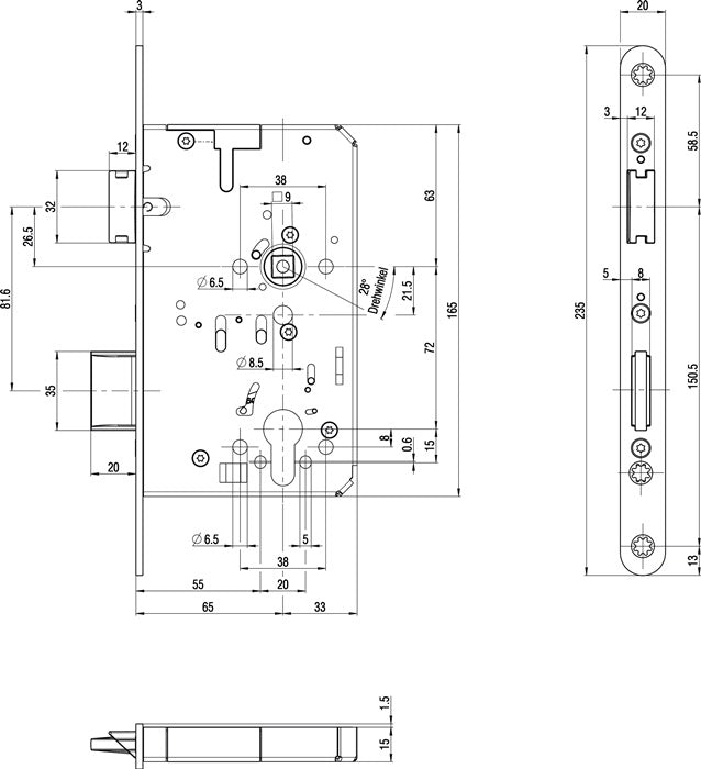 BKS serrure anti-panique à encastrer 2320 fonction anti-panique B arrondie ( 3324024355 )