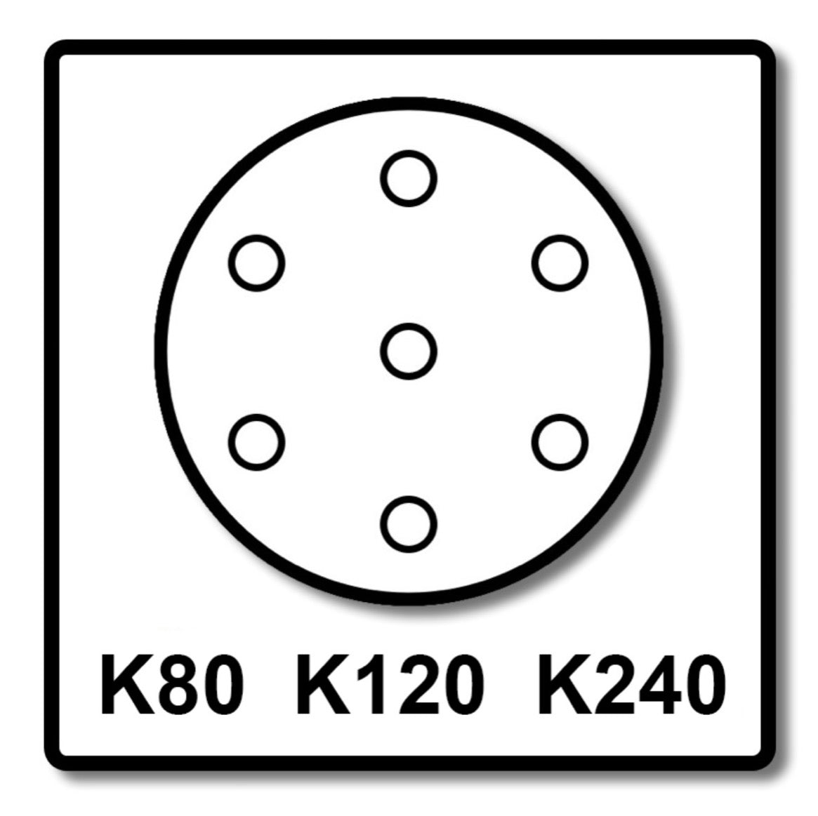 Bosch jeu de papiers abrasifs excentriques avec Velcro perforé K80 K120 K240 125 mm 125 pièces (2607019497)
