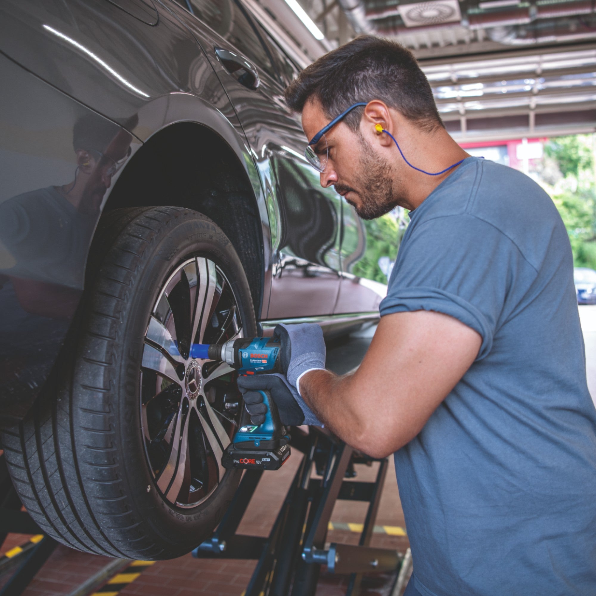 La visseuse à choc sans fil GDS 18V-330 HC Professional de Bosch est la solution parfaite pour les travaux de vissage exigeants dans différents domaines tels que les ateliers de métallurgie, le montage industriel, la construction de cadres et l'entretien de véhicules. Avec un couple de serrage de 330 Nm et un couple de rupture de 560 Nm, cette visseuse à choc compacte et puissante offre des performances maximales pour les vis et écrous métalliques de M8 à M18. Grâce aux trois niveaux de vitesse et de couple, vous pouvez adapter la puissance de manière flexible à différents matériaux et applications, pour un meilleur contrôle et une plus grande précision dans le travail. La GDS 18V-330 HC propose deux modes de vissage standard qui peuvent être personnalisés via la Bosch Toolbox App pour optimiser l'application. Ces modes, l'un pour les vis/écrous métalliques (A) et l'autre pour les vis à bois (B), évitent de trop serrer les vis et de casser les têtes de vis en réduisant automatiquement la vitesse ou en arrêtant l'appareil dès que la vitesse maximale est atteinte. L'appareil est compatible avec toutes les batteries et tous les chargeurs 18V Bosch Professional et fait partie du système Professional 18V. Il est également compatible avec AMPShare, l'alliance de batteries multimarques. Parmi les fonctions pratiques du GDS 18V-330 HC figurent un indicateur d'état de l'outil qui indique à tout moment l'état de fonctionnement, une lampe LED pour un meilleur éclairage de la zone de travail et un clip ceinture pour un transport confortable et un accès facile.