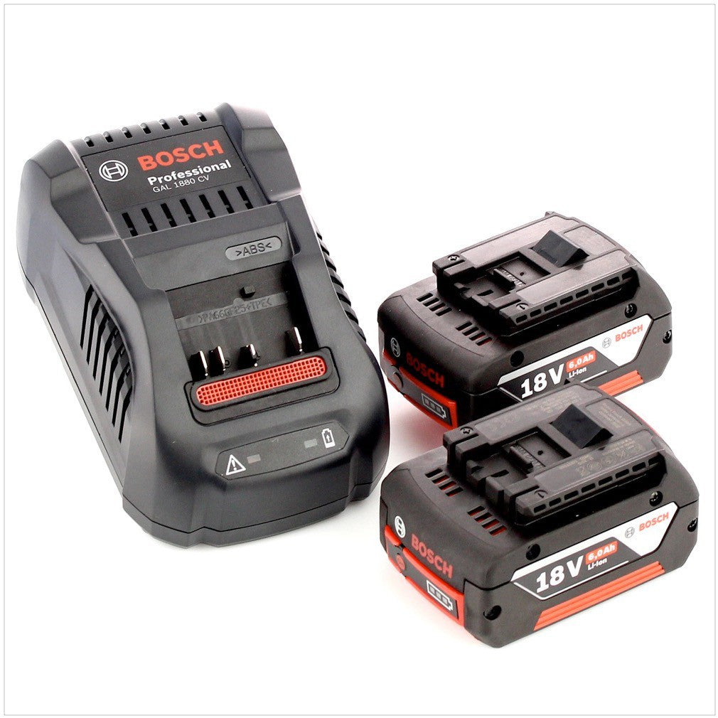 Perceuse à percussion sans fil Bosch GSB 18 VE-EC Professional en L-Boxx avec insert, 2 batteries GBA 6 Ah, chargeur rapide GAL 1880 + jeu de 7 perceuses Bosch CYL-9 Multicontruction
