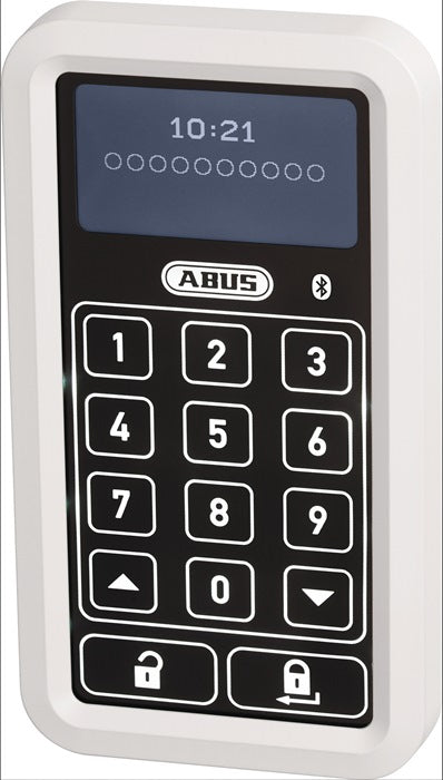 pour la commande de l'entraînement de serrure de porte HomeTec Pro Bluetooth - verrouillage/déverrouillage et ouverture de la porte par saisie de code - permet l'attribution d'autorisations d'accès - écran rétroéclairé avec surface tactile de haute qualité - montage simple, flexible et sans fil - sécurité maximale grâce au cryptage AES-128 bits et à la Keycard ABUS - norme radio Bluetooth - alimentation en tension par pile