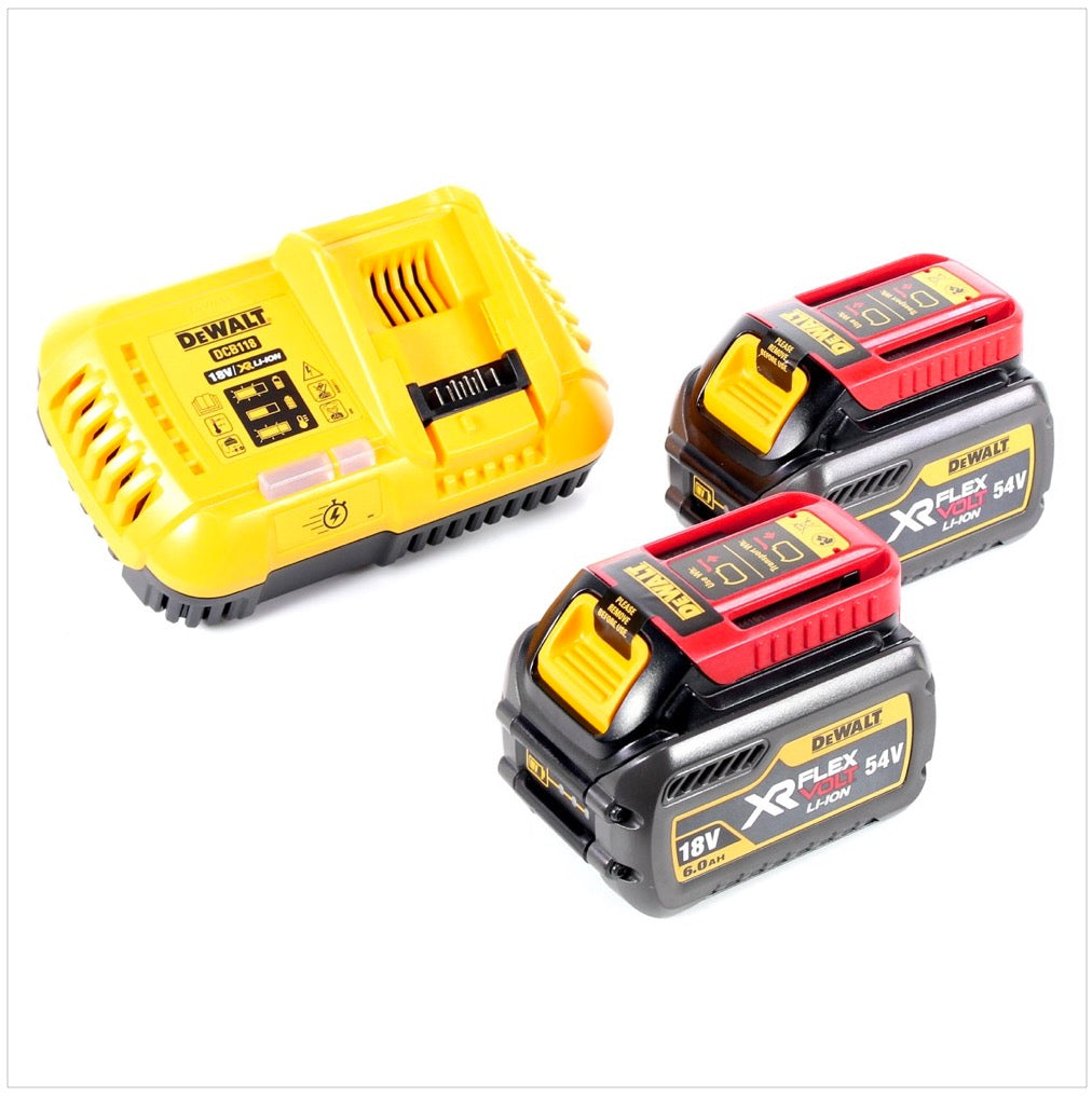 DeWalt DCS 388 Scie sabre 54 V + 2x DeWalt DCB 546 54 V 6Ah Batterie + DeWalt DCB 118 Chargeur