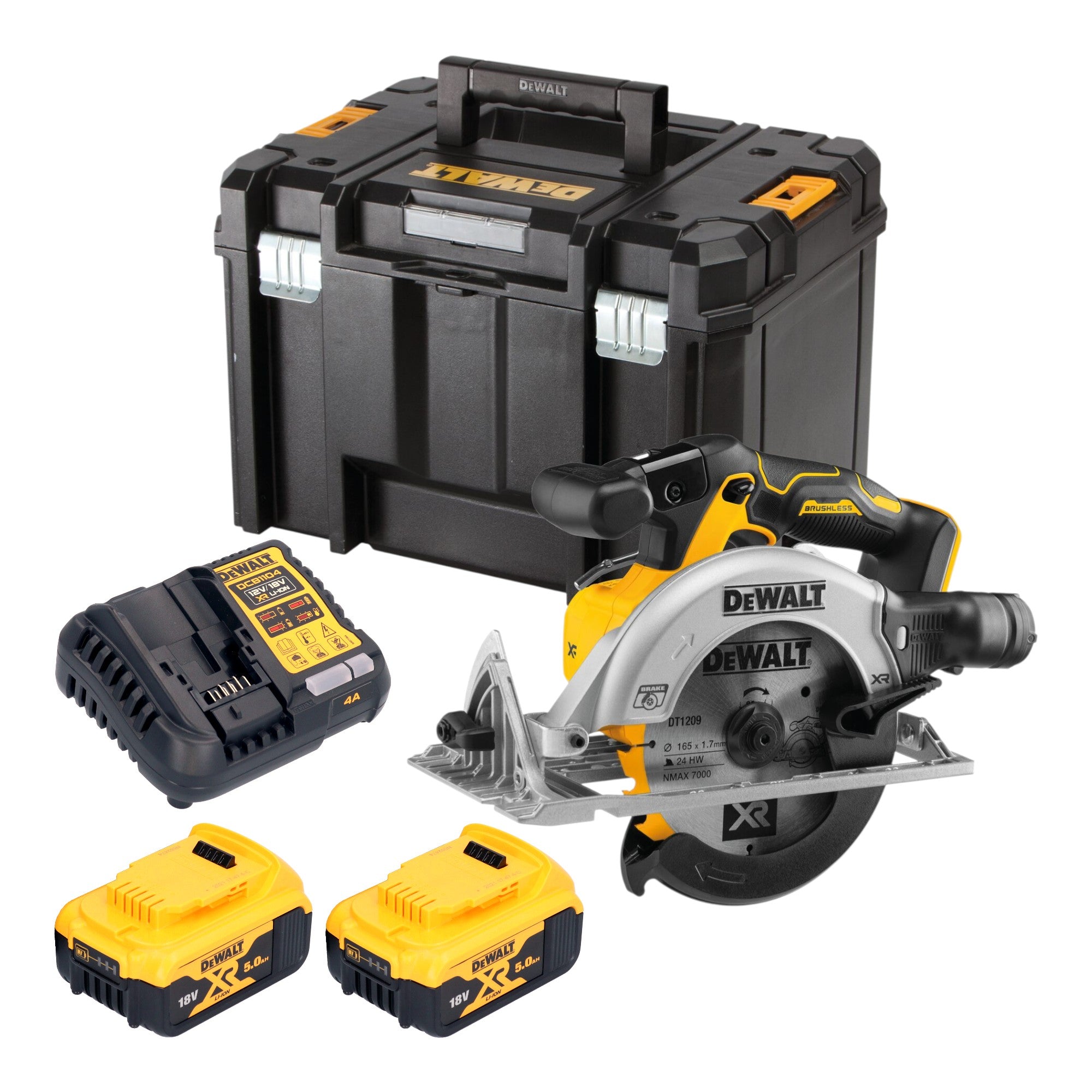 DeWalt DCS 565 P2T Akku Handkreissäge 18 V 165 mm Brushless + 2x Akku 5,0 Ah + Ladegerät + TSTAK