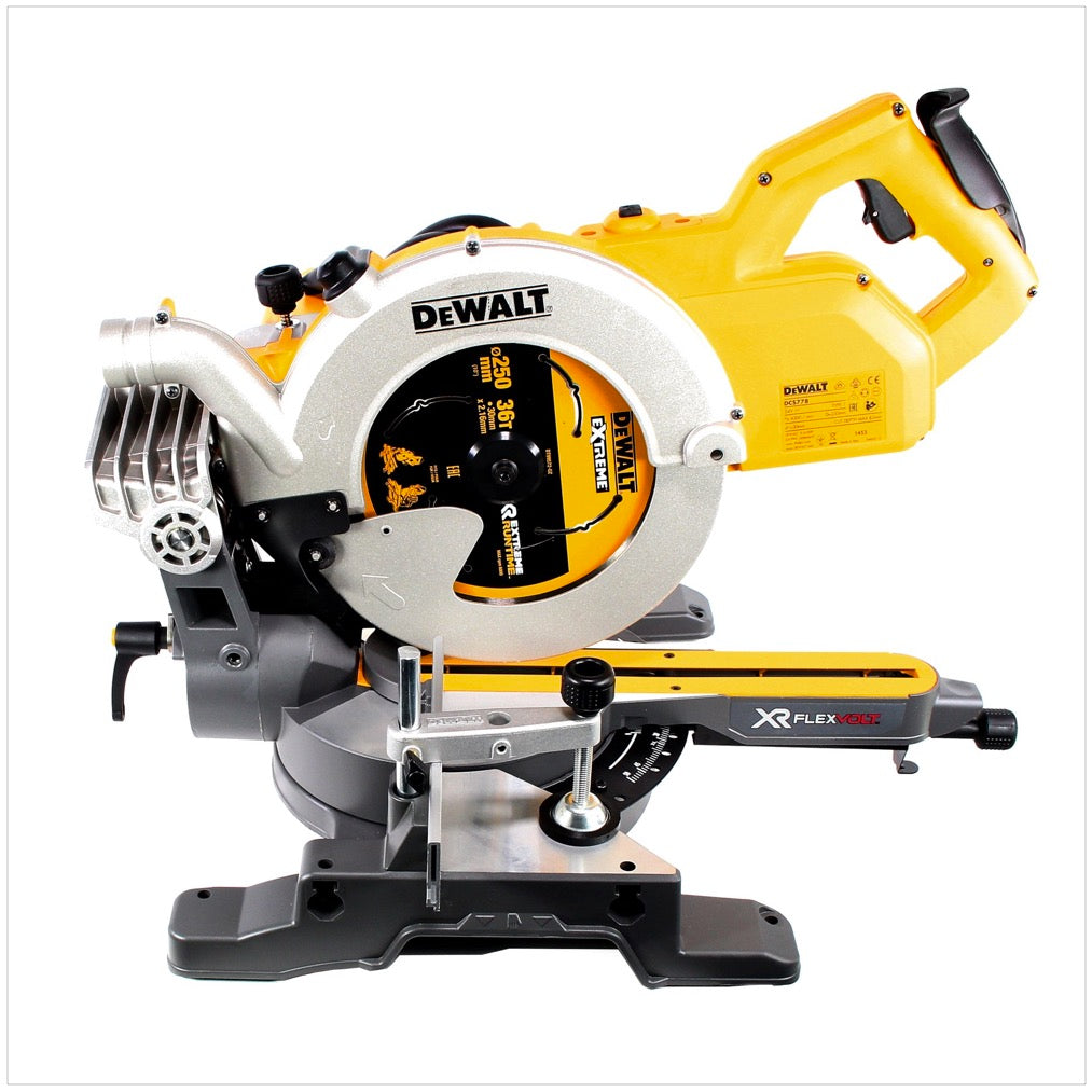 - 1x Dewalt DCS 778 54 V FlexVolt Brushless Scie à onglet radiale sans fil 250 mm