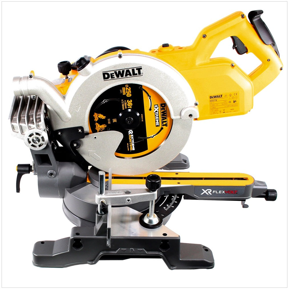 DeWalt DCS 778 XR FlexVolt 54 V Scie à onglets radiale sans fil 250 mm + 2x Batteries DCB 6,0 Ah Li-lon + 1x Chargeur DCB 118