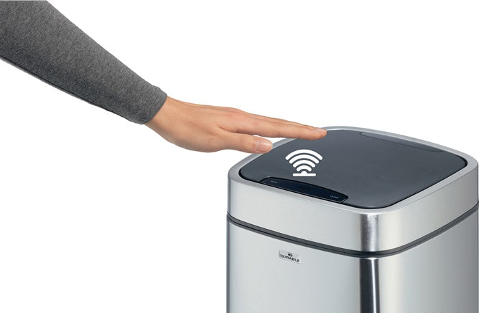 avec capteur - permettent l'élimination des déchets sans contact dans des récipients fermés, ce qui est particulièrement nécessaire dans le cadre de directives d'hygiène strictes - utilisation sans contact grâce à la technique de capteur - s'ouvre grâce à un capteur de mouvement et se ferme automatiquement, alternativement utilisable manuellement via des boutons Open/Close - seau intérieur amovible avec anse et fixation du sac - couvercle amovible pour faciliter le vidage - fonction soft-close du couvercle - corps en acier inoxydable avec revêtement Fingerprint-Proof - socle antidérapant et forme carrée pour gagner de la place - nécessite 4 piles AA (non fournies) Contenu 12 l