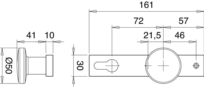 Plaque courte pour coffre de serrure avec bouton droit - distance 72 mm - perforé PZ - plaque massive - convient à tous les coffres de serrure avec fouillot de 8 mm - bouton avec filetage M-12 - distance entre les trous de vis 67 mm - épaisseur 10 mm - hauteur 161 mm - largeur 30 mm - vissage visible - DIN gauche / droite - aluminium - livré sans goupille ni vis