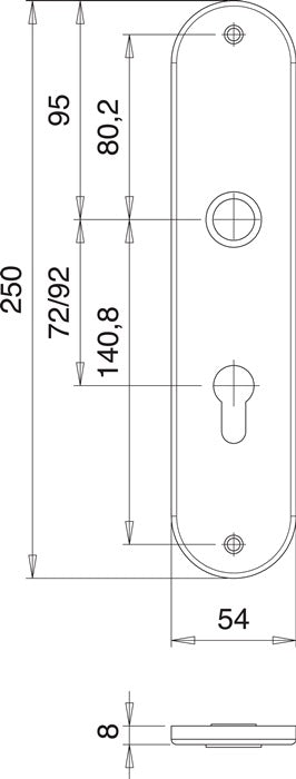 Acier inoxydable - ovale - vissage visible - largeur 54 mm - longueur 250 mm