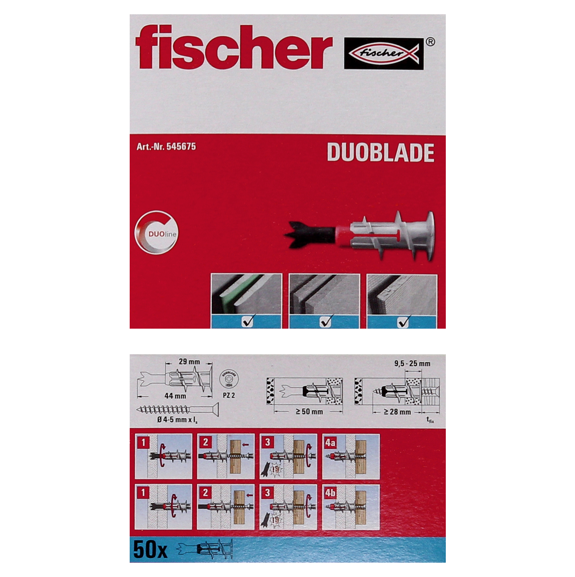 Fischer DUOBLADE Cheville autoforeuse pour plaques de carton plâtre 44mm 500 pcs. (10x 545675)