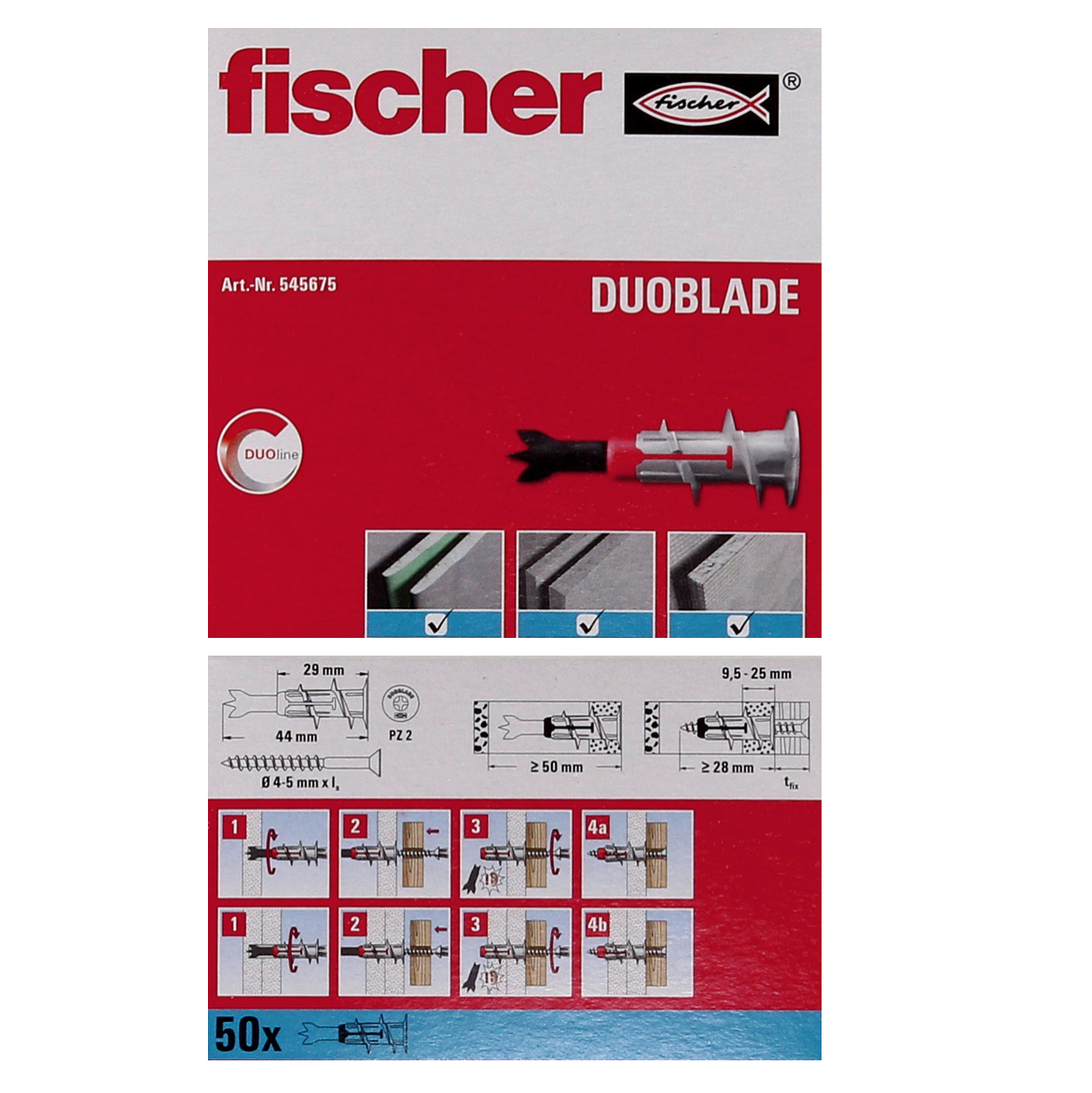 - 50x Fischer DUOBLADE Chevilles autoforeuses pour plaques de carton plâtre 44mm ( 545675 )
