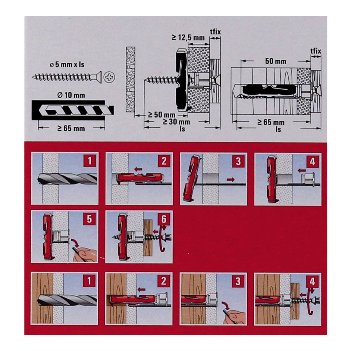 - 500x chevilles à cavité/à bascule Fischer DUOTEC 10 50mm (10x 537258)