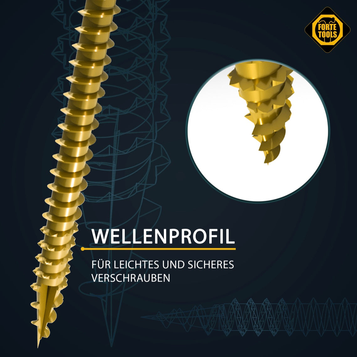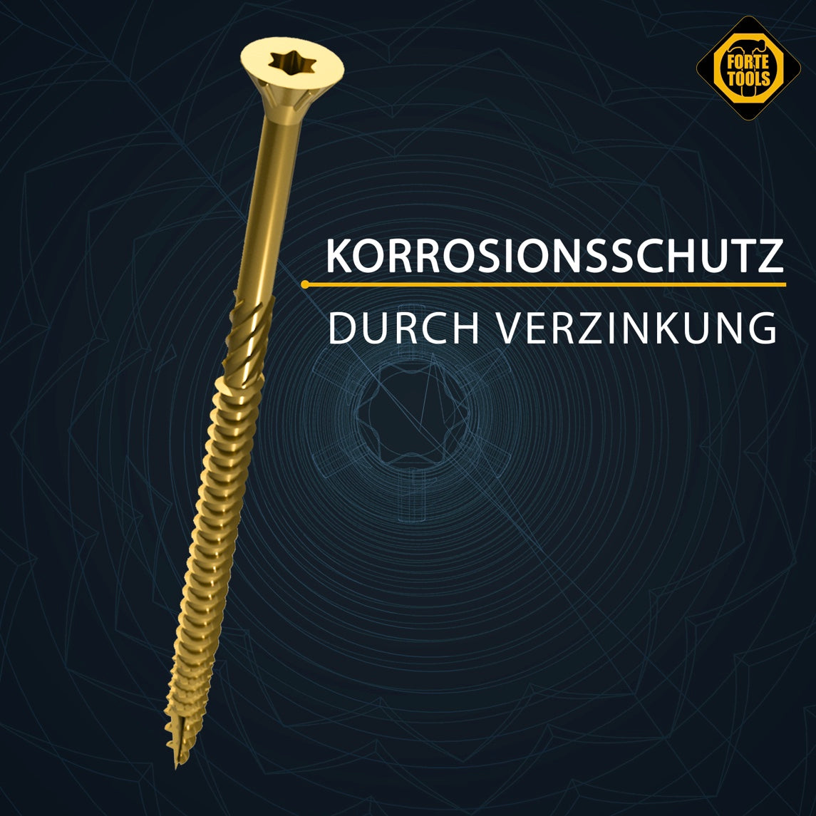 FORTE Tools Vis à bois universelle 4,5 x 50 mm T20, Galvanisée jaune, Tête fraisée Torx, Filetage partiel, 800 pcs. (4x 000051399479)