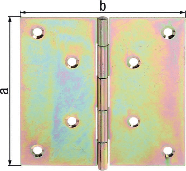Exécution : carrée, répartition industrielle jusqu'à 40 mm = en trois parties, à partir de 50 mm = en cinq parties - avec tige en acier inoxydable rivetée - En raison de la modification de la surface, cet article peut être livré dans différentes exécutions (galvanisé jaune, galvanisé sendzimir ou galvanisé-passivé à épaisseur).