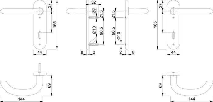 Garniture pour porte intérieure à plaque courte testée selon la norme DIN EN 1906 (catégorie d'utilisation classe 3) · Poignées de porte avec connexion à goupille rapide (avec goupille pleine de 8 mm) pour une épaisseur de porte de 37 à 42 mm et ressort de rappel · Vissage dissimulé · Sens d'ouverture DIN gauche / droite, distance 72 mm