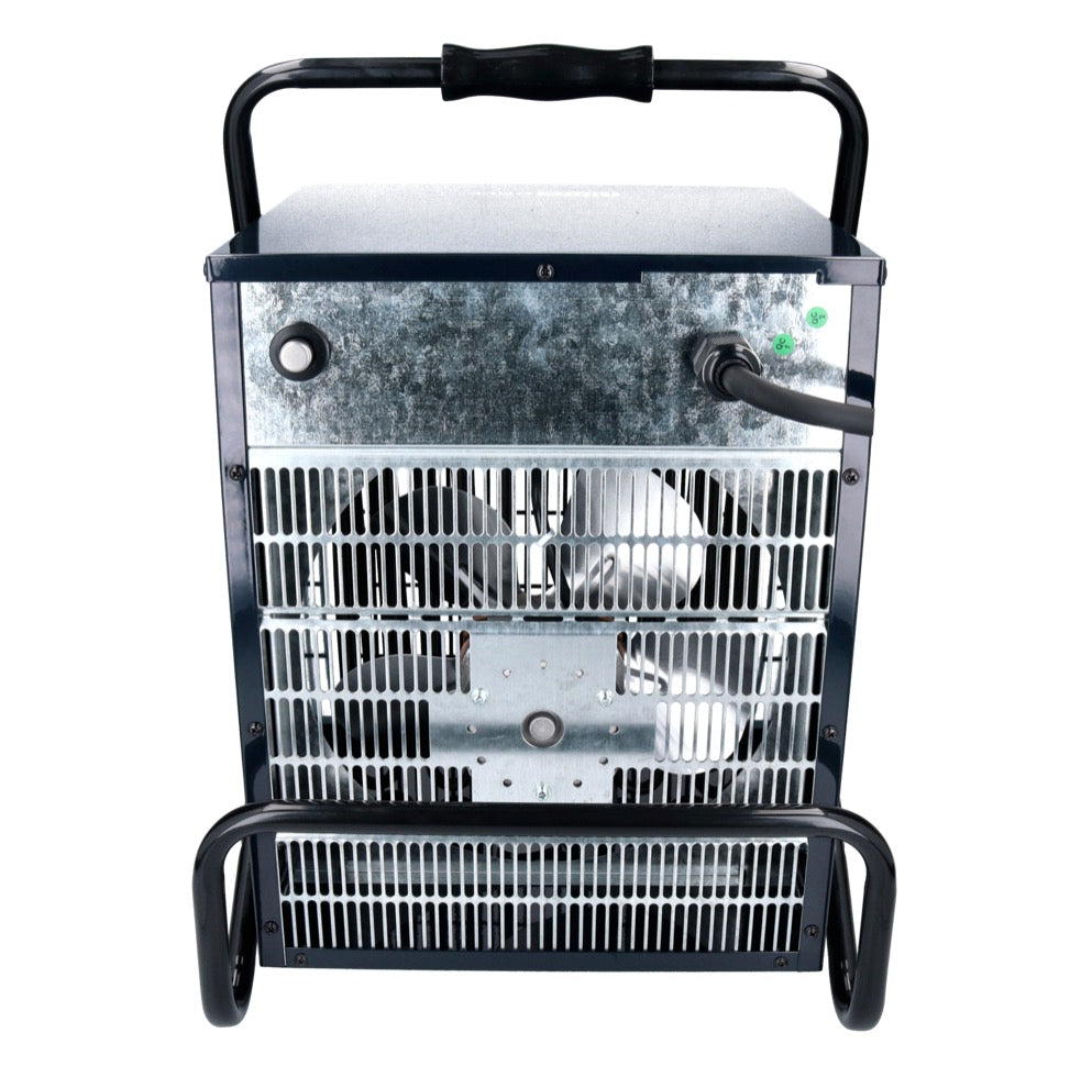 Le chauffage industriel électrique IFJ03-400E de HAUSHALT peut être utilisé avec une puissance de 9 kW pour chauffer des locaux techniques, des zones calmes ou des pièces plus grandes jusqu'à une taille de pièce de 90 m². Le radiateur est alimenté par une prise électrique de 400 V. La conception du radiateur est techniquement et conventionnellement simple pour garantir une utilisation facile. Grâce aux deux interrupteurs situés en façade, le volume d'air souhaité et la température souhaitée peuvent être facilement réglés en trois étapes. La poignée située sur le dessus du boîtier facilite le transport de l'appareil. De plus, l'appareil est équipé d'une protection contre la surchauffe pour garantir une utilisation sûre de l'appareil.