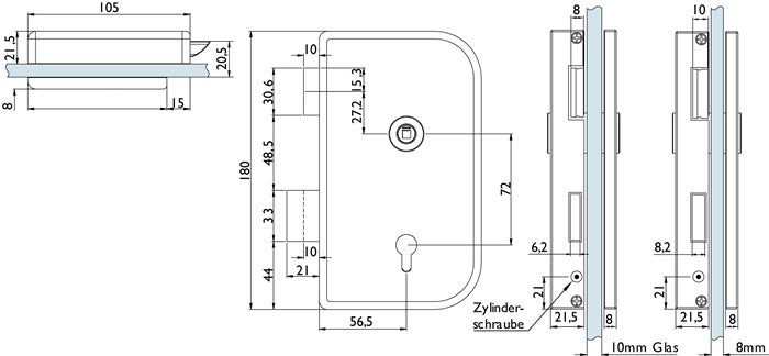 HERMAT Serrure de porte en verre 6033 PZ L - Roma acier inoxydable mat ( 3000253945 )