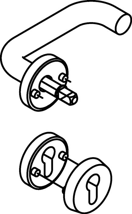 avec rosace de protection - en technique H avec rosaces selon DIN 18255 et DIN EN 1906 en acier inoxydable, surface brossée mate, se composant de : Béquille 111XAH, diamètre 21,3 mm, rosaces rondes 305.21XAH. Rosace ronde, diamètre 55 mm, hauteur 10,5 mm. Rosace de protection 306.23XAES en acier inoxydable, rosace extérieure, massive, diamètre 55 mm, hauteur 12 mm, trempée, rosace intérieure, diamètre 55 mm, hauteur 10,5 mm. Catégorie d'utilisation : classe 4 Garniture coupe-feu avec VK 9 mm, selon DIN 18273 Résistance au feu : classe B1 Proposition d'exécution ! Veuillez vérifier toutes les dimensions et les conditions de construction en cas de commande ! "