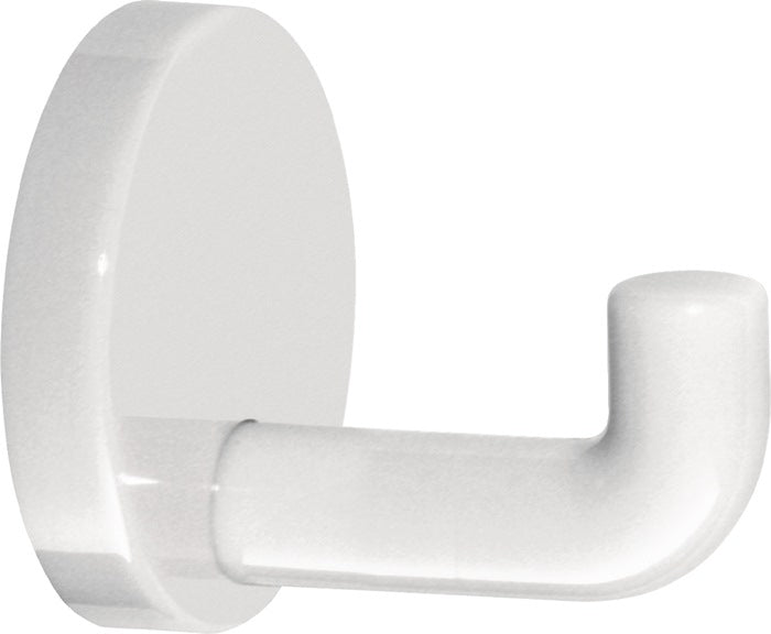 Crochet cylindrique à angle droit avec rosace de fixation · le crochet permet de suspendre des vêtements et d'autres ustensiles · facile à nettoyer · antivol grâce à un raccord à vis caché · 65 mm de profondeur, diamètre de rosace 60 mm · en polyamide de haute qualité dans certaines couleurs HEWI