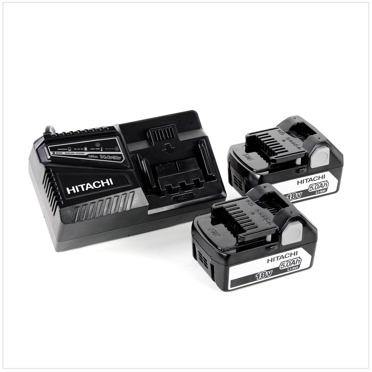 Hitachi DV 18 DGL Perceuse-visseuse à percussion 18 V + 2x Batteries Hitachi BSL 1850 5,0 Ah + Chargeur Hitachi UC 18YFSL 14,4 - 18 V + Coffret