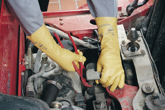 selon EN 388 - cat. II - Matière : tricot BW avec nitrile - enduit de nitrile spécial - bonne résistance à la température - anti-humidité - sécurité alimentaire selon UE 1935/2004 - bonne résistance mécanique - bonne préhension des pièces mouillées - protection supplémentaire de l'avant-bras grâce à la manchette rallongée - manchette large pour un enfilage et un retrait rapides - Application : Industrie automobile, construction de machines, travaux de transport, mécanique de précision, industrie de l'emballage, industrie du bâtiment, travaux avec des pièces mouillées et huileuses Sur demande, également disponible en taille 7