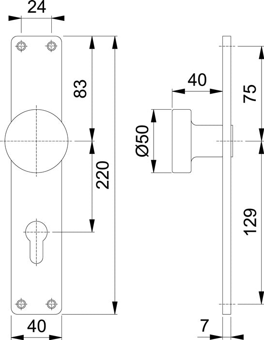 - Bouton de porte 54/202 aluminium F2 72 mm