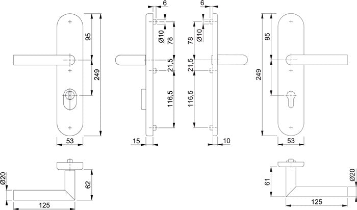 HOPPE Garniture coupe-feu Amsterdam FS-E1400F/3332ZA/33310 Acier inoxydable F69 D/D ( 3000220045 )
