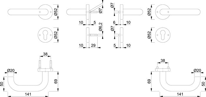 HOPPE Garniture coupe-feu Paris FS-E138/42H/42HS acier inoxydable F69 D/D ( 3000203108 )