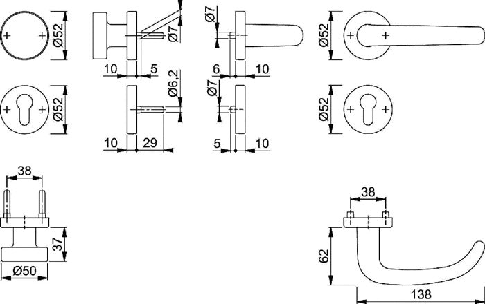 HOPPE Garniture coupe-feu San Francisco FS-58/42H/42HS/1301 aluminium F1 D/K ( 3000202073 )