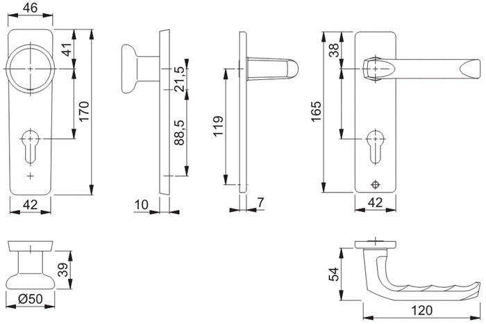 HOPPE Garniture d'entrée courte London 54/227K/202KP/AP/113 aluminium F1 ( 3000252236 )