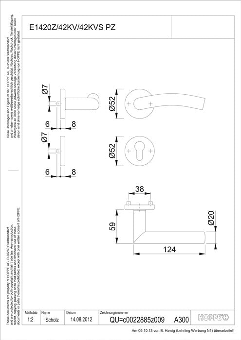 Garniture à rosettes avec rosettes à clé - testée selon DIN EN 1906 : 37-0140A (catégorie d'utilisation classe 3), garniture pour objet - logement : poignées de porte détachées, ressorts de rappel utilisables à droite/à gauche, paliers lisses sans entretien - avec assemblage rapide par goupilles pour D/D avec goupille pleine HOPPE (partie trou/trou), pour K/D avec goupille pleine HOPPE-FDW (partie trou)- sous-construction : plastique, ergots de soutien - Fixation : invisible, traversante, alternée, vis à usages multiples ATTENTION : pour les garnitures alternées, veuillez tenir compte de la DIN droite ou gauche !