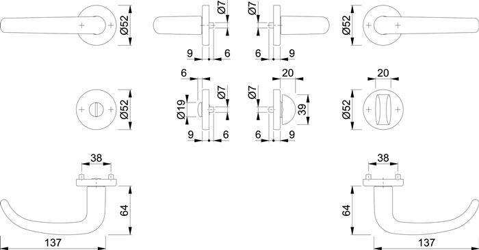 Garniture de rosace de porte intérieure selon DIN EN 1906 (catégorie d'utilisation classe 3) - Poignées de porte avec assemblage rapide par goupilles (avec goupille pleine de 8 mm) pour épaisseur de porte 37 - 42 mm - Rosace avec sous-construction en plastique, ressort de rappel et ergot d'appui - Fixation invisible, traversante - vis à usage multiple incluses de chaque côté - Sens d'ouverture DIN gauche / droite
