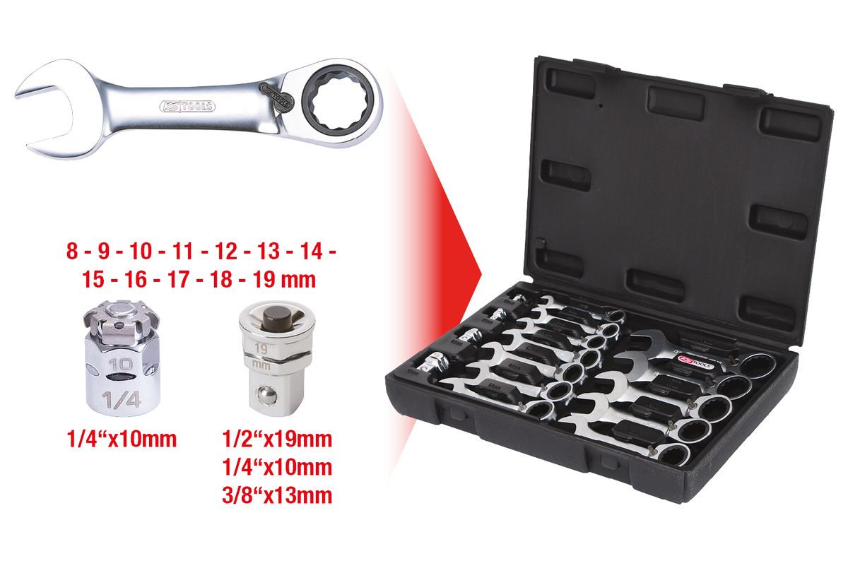 KS TOOLS Jeu de clés mixtes à cliquet courtes GEARplus, 16 pcs ( 503.4653 )