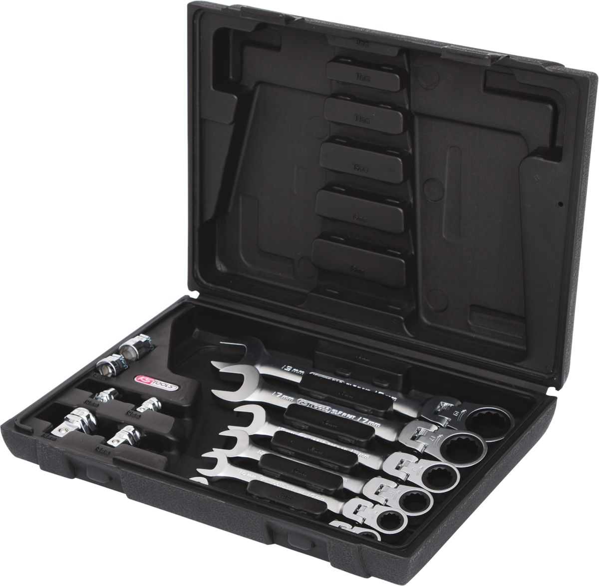 KS TOOLS Jeu de clés mixtes à cliquet à tête inclinable à verrouillage GEARplus, 12 pcs avec adaptateurs ( 503.4867 )