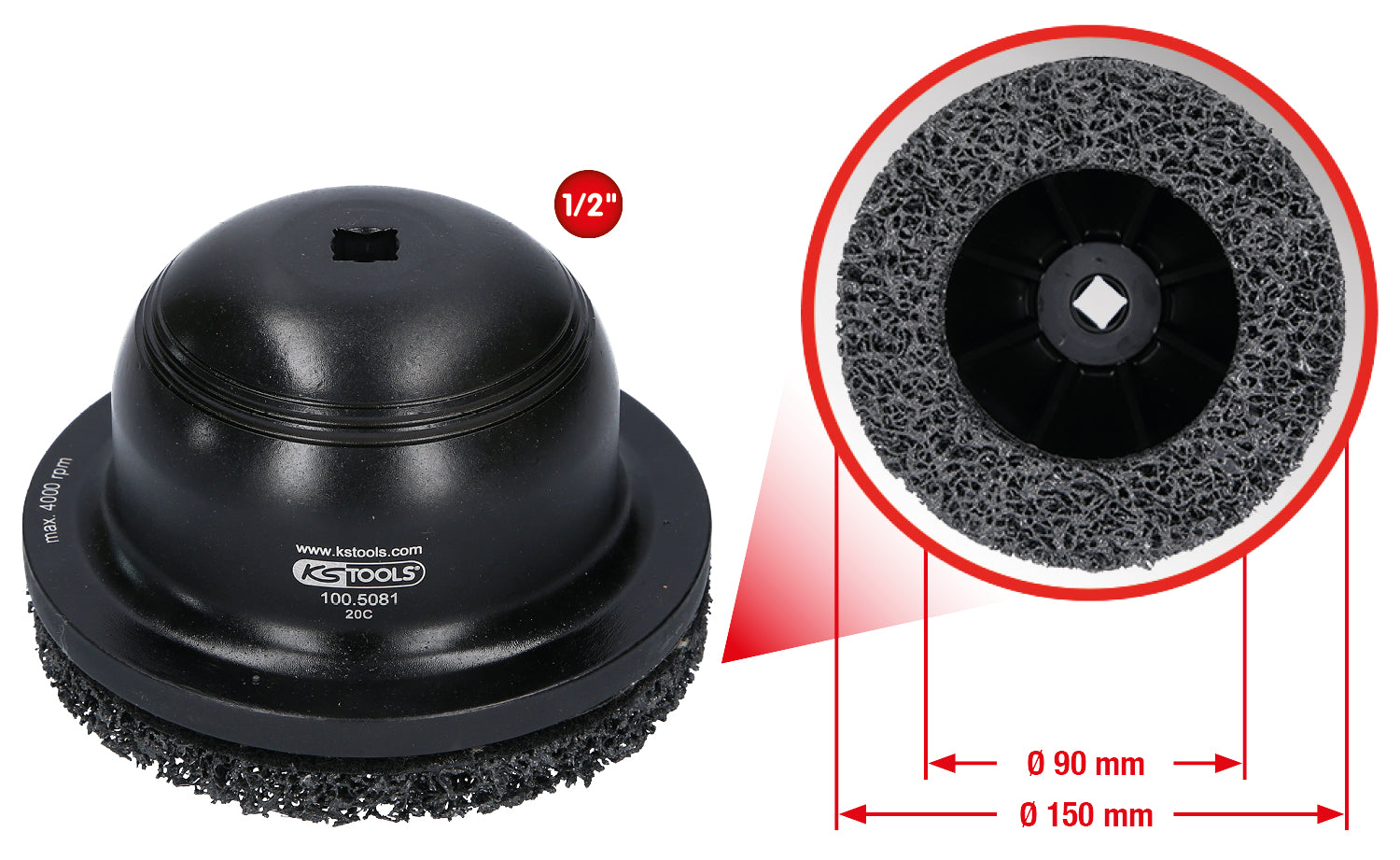 KS TOOLS Jeu de disques à poncer en aluminium pour moyeux Ø 150 mm, Ø intérieur 90 mm, 2 pcs ( 100.5080 )