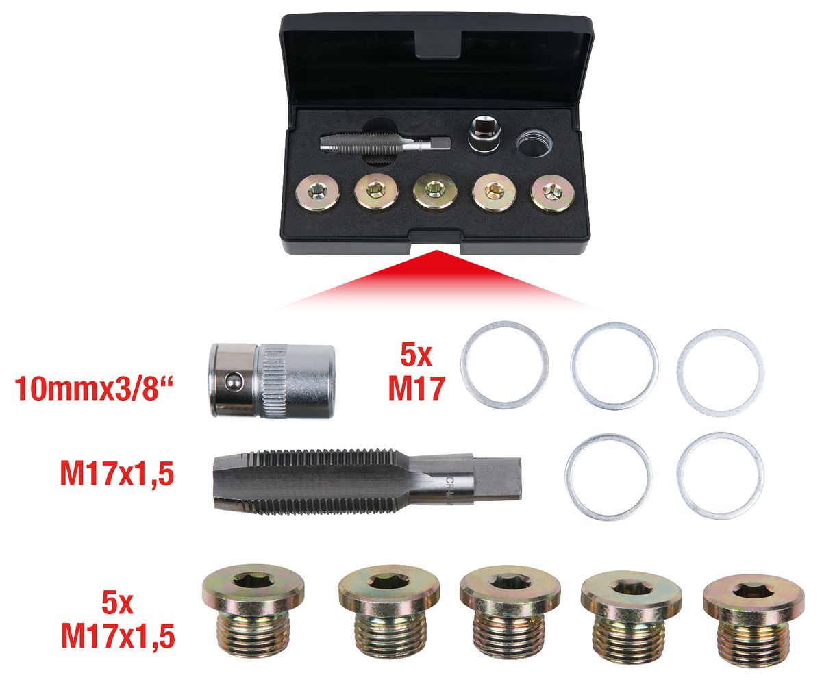 KS TOOLS Kit de réparation pour bouchons de vidange, 12 pcs M17x1,5 ( 150.4930 )