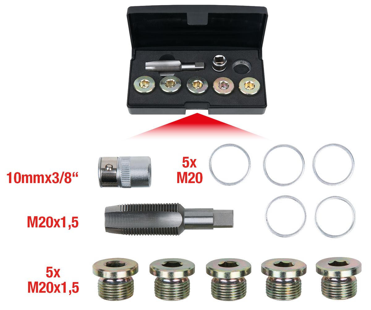 KS TOOLS Kit de réparation pour bouchons de vidange, 12 pcs M20x1,5 ( 150.4940 )