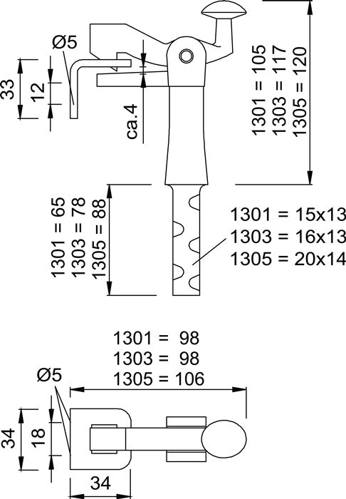 - Arrêt de porte 1301/1303/1305 fonte malléable noire