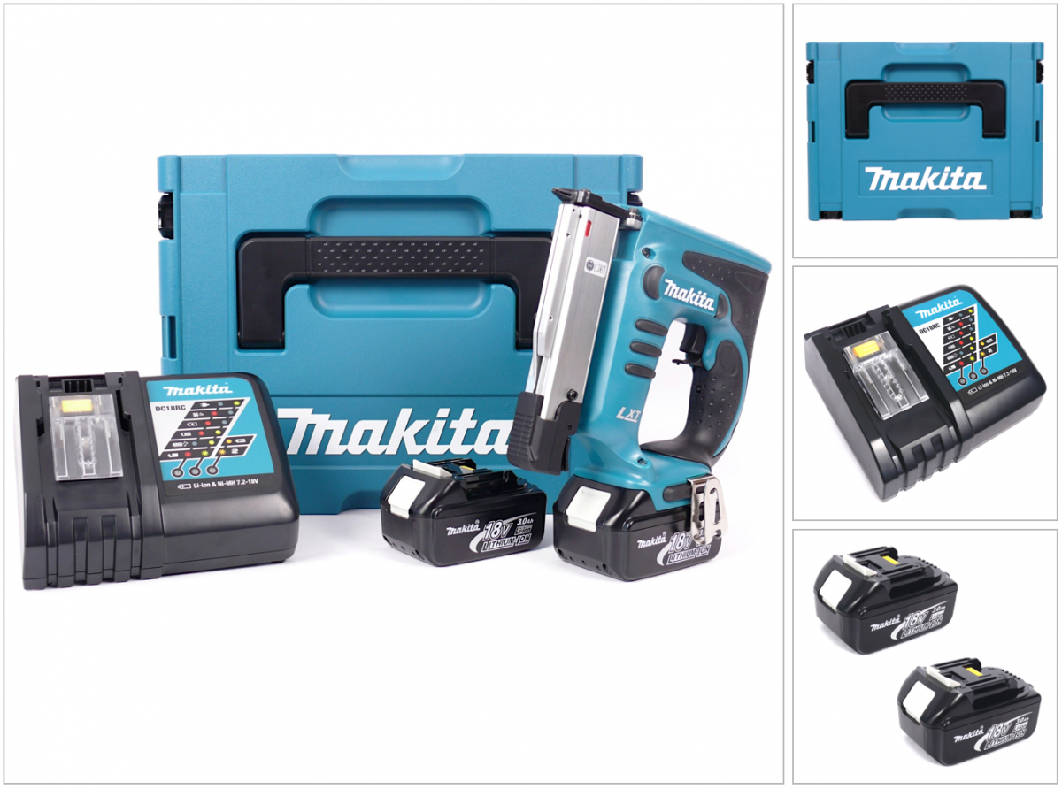 Makita BPT 351 RFJ 18 V Agrafeuse sans fil + Coffret MAKPAC + 2x Batteries BL 1830 B + Chargeur DC18RC