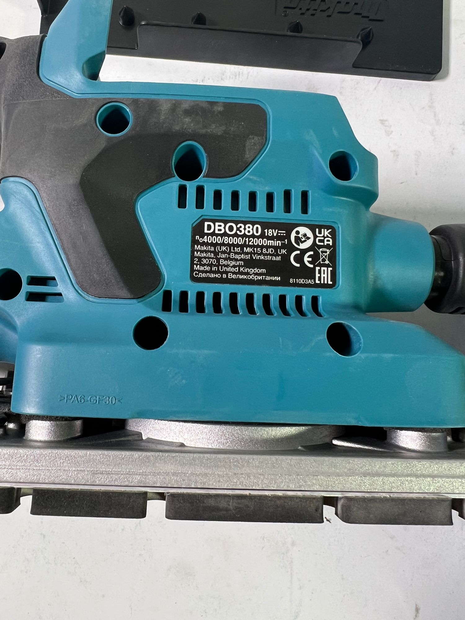 Makita DBO 380 Z Akku Schwingschleifer 18 V 93 x 185 mm Brushless Solo - ohne Akku, ohne Ladegerät - Gebraucht