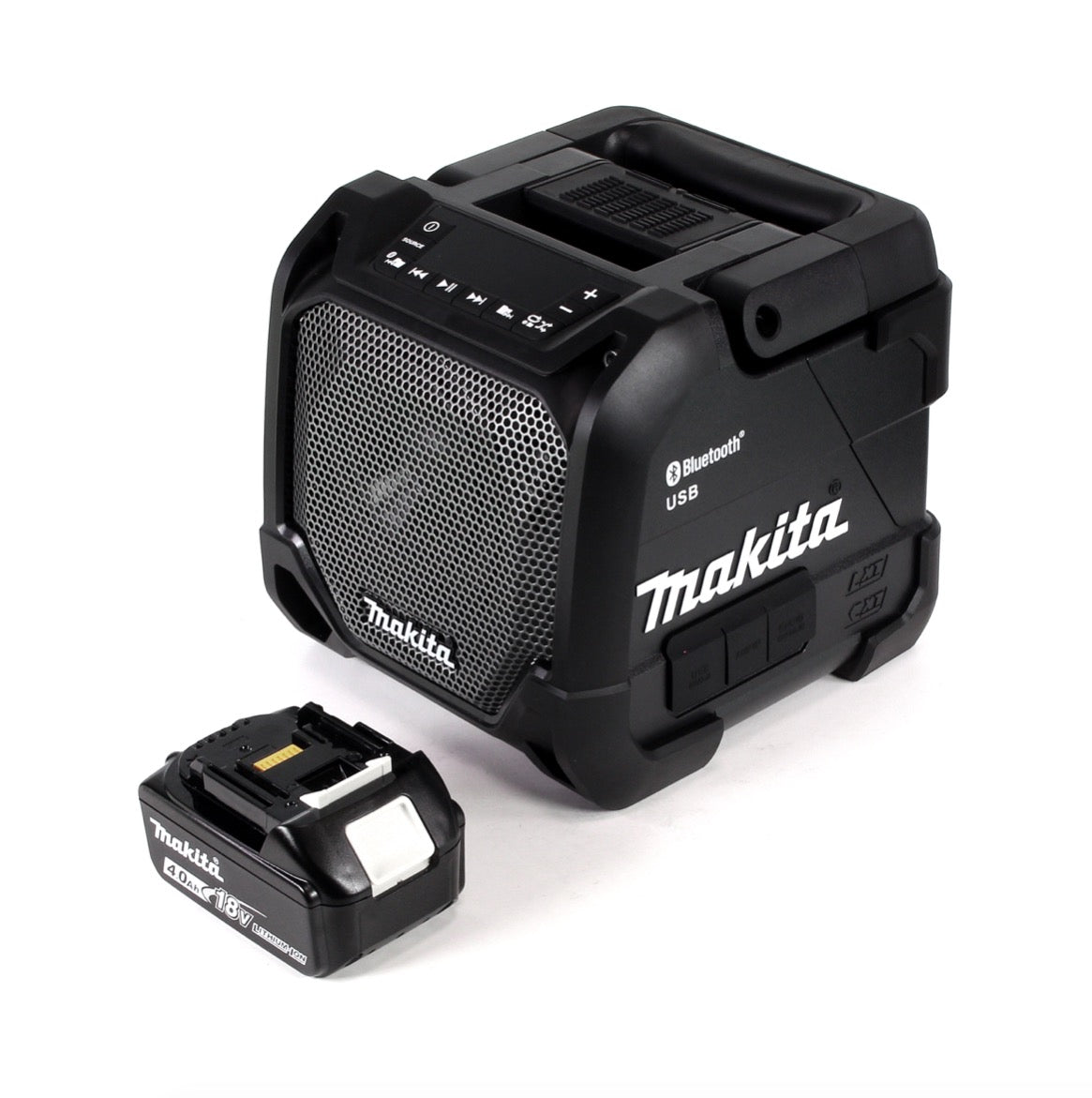 Makita DMR 202 M1 B Enceinte de chantier noir Batterie Bluetooth et fonctionnement sur secteur avec 1 batterie 4,0 Ah - sans chargeur