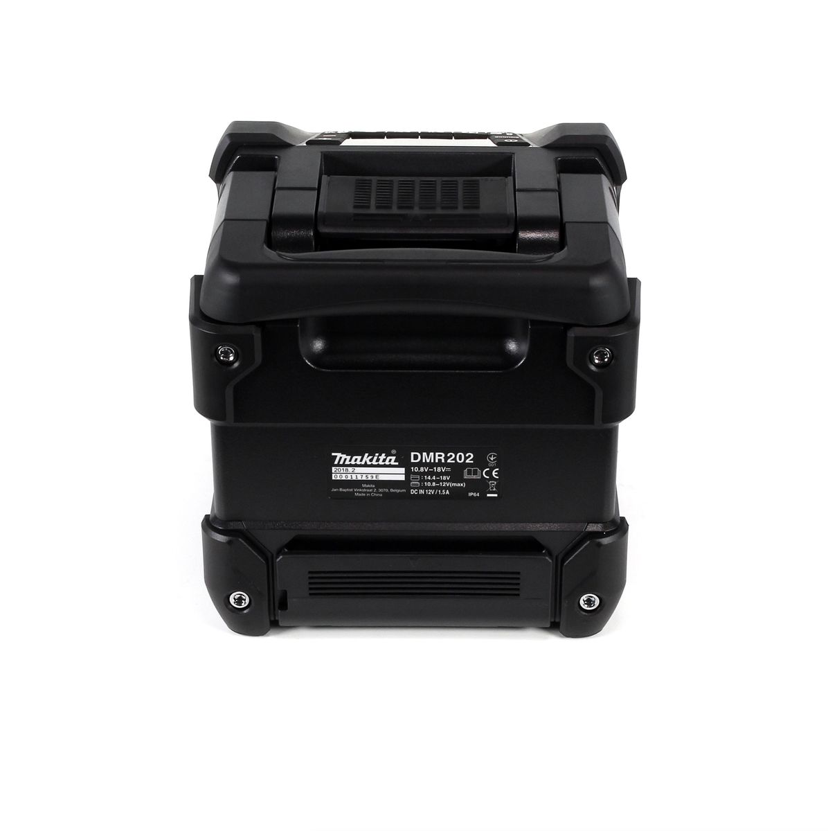 Makita DMR 202 RG1 B enceinte de chantier noir Bluetooth batterie et fonctionnement sur secteur avec 1 batterie 6,0 Ah et chargeur