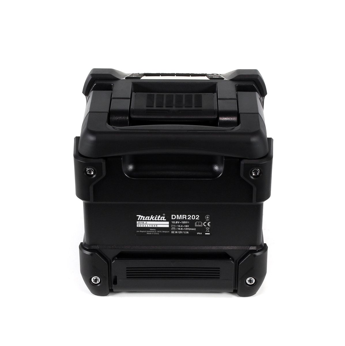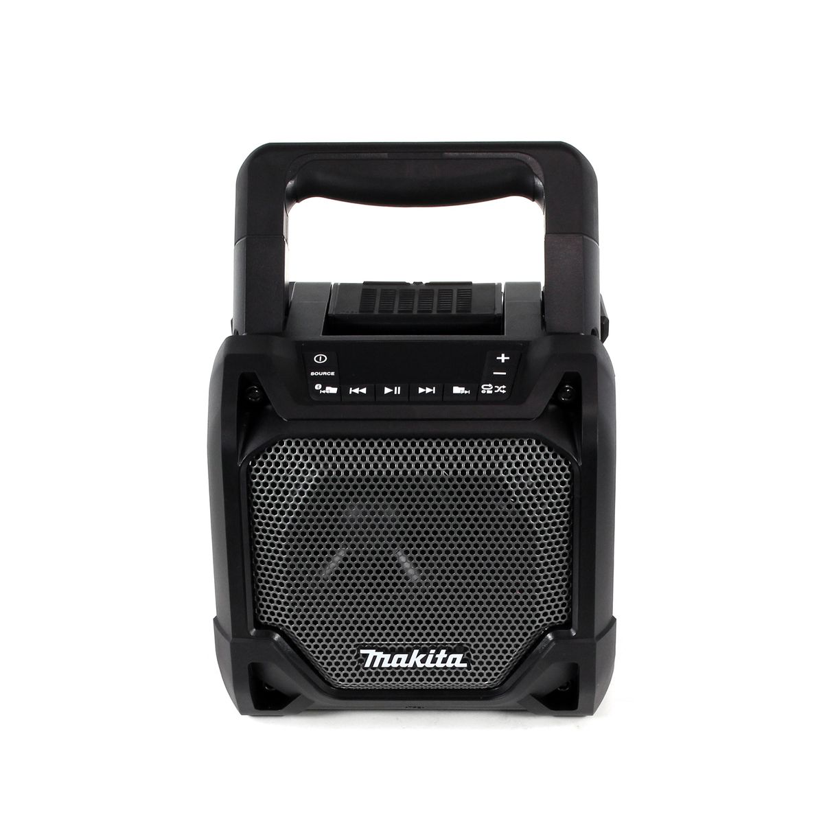 Makita DMR 202 RT1 B enceinte de chantier noir Bluetooth batterie et fonctionnement sur secteur avec 1 batterie 5,0 Ah et chargeur