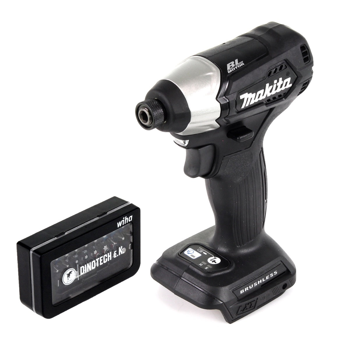 Makita DTD 155 Z B Brushless Li-Ion Visseuse à chocs sans fil de couleur Noir 1/4 " + 31 pièces de forets cylindriques pour bois, acier, béton Wiha Set Dinotech Edition - sans Batterie ni Chargeur