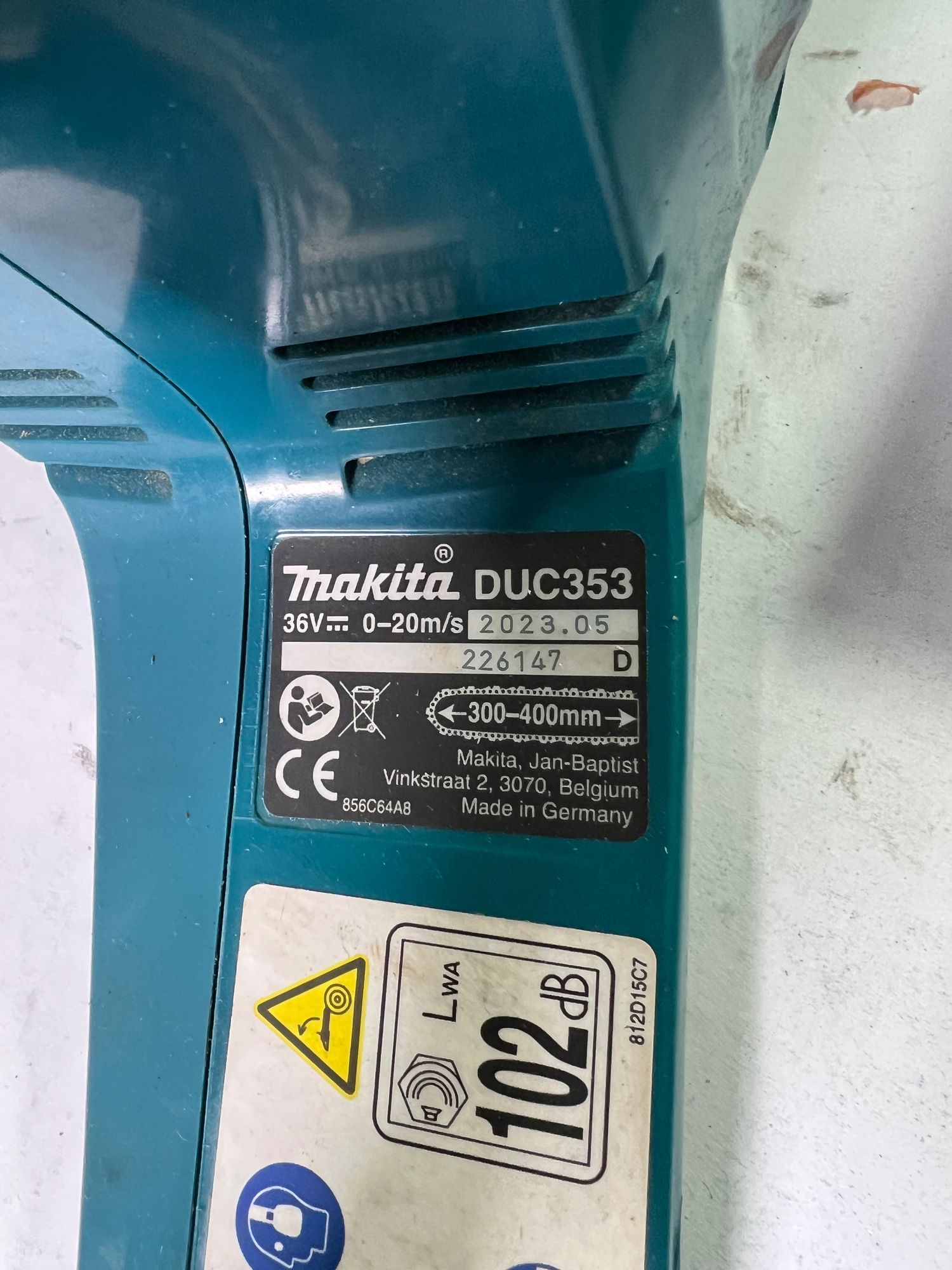 Makita DUC 353 Z Akku Kettensäge 36V ( 2x18V ) Brushless 35 cm Solo - ohne Akku, ohne Ladegerät - Gebraucht
