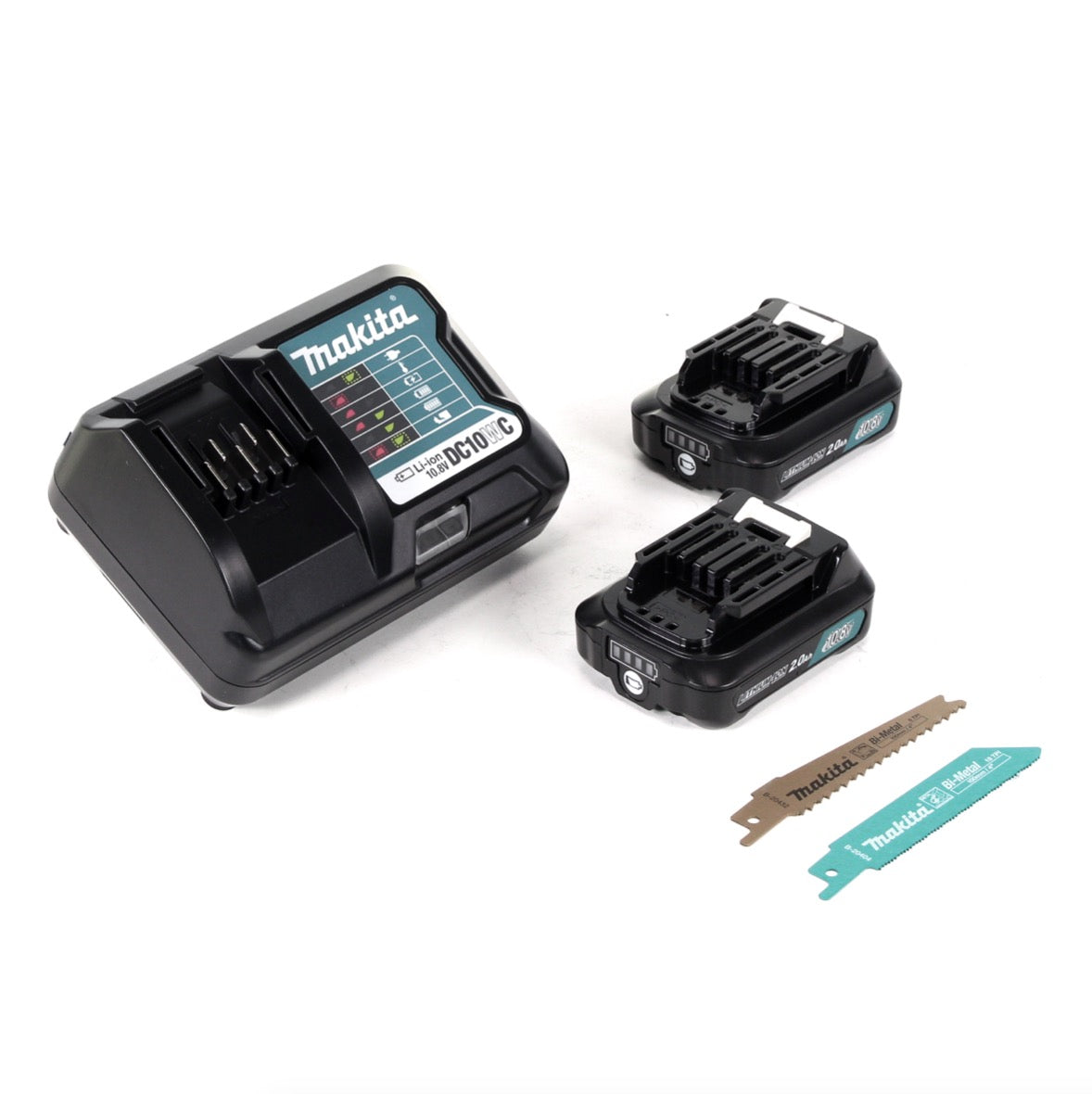 Makita JR 105 DWAE Scie sabre 10,8 V + 2x Batteries BL 1020 B 2,0 Ah + Chargeur DC 10 WC + Mallette de transport