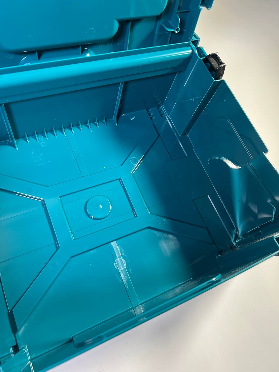 Le coffret système MAKPAC de Makita est le meilleur moyen pour ranger vos outils et accessoires en toute sécurité et les avoir toujours à portée de main. Il est facile à empiler, à fixer et à transporter. Sa conception à partir de profilés d'angle à double paroi, les surfaces renforcées sur son couvercle, ses côtés et son fond, font de lui un idéal pour le rangement des outils. De plus, les bords arrondis de son boîtier et de sa poignée améliorent également le confort d'utilisation et de transport.