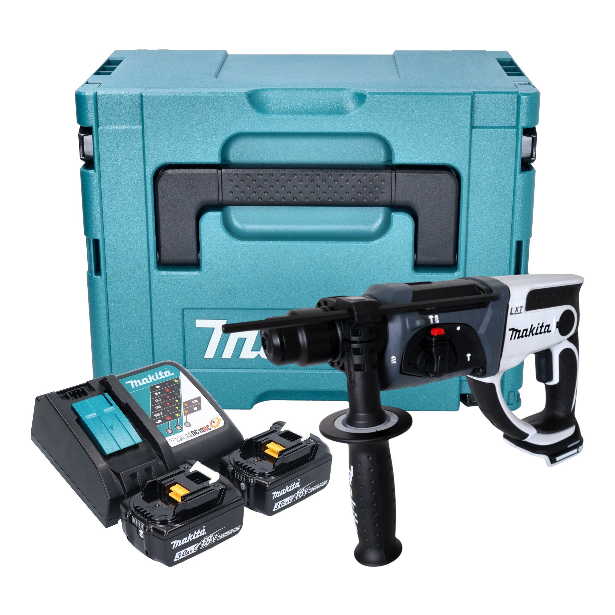 Marteau perforateur sans fil Makita DHR 202 RFJW 18 V 20 mm 2,0 J blanc + 2 batteries 3,0 Ah + chargeur + Makpac